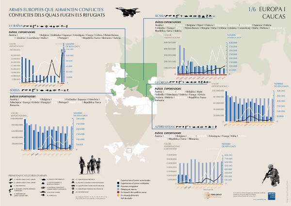 El Centre Delàs denuncia en el seu darrer informe “Armes europees que alimenten conflictes. Conflictes dels quals fugen els refugiats” que la Unió Europea (EU) ha exportat armament cap a països en els quals hi ha una situació de conflicte o tensió i on, a més, hi ha importants xifres de refugiats i desplaçats interns.